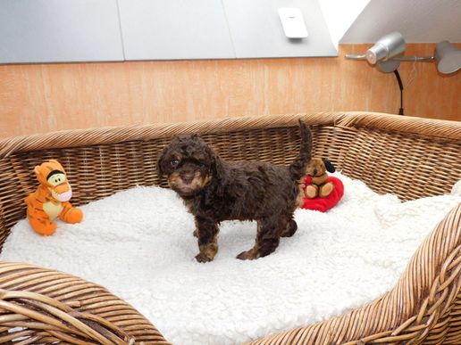 Ist nicht heute morgen der kleine Schlingel Dexter aus der Wurfkiste geklettert? Oh je - Zeit für den Umzug aus der Wurfkiste in ein kleines Gehege. Da heute ein Termin ins Wasser gefallen ist, konnte ich noch schnell ein paar Bilder machen.